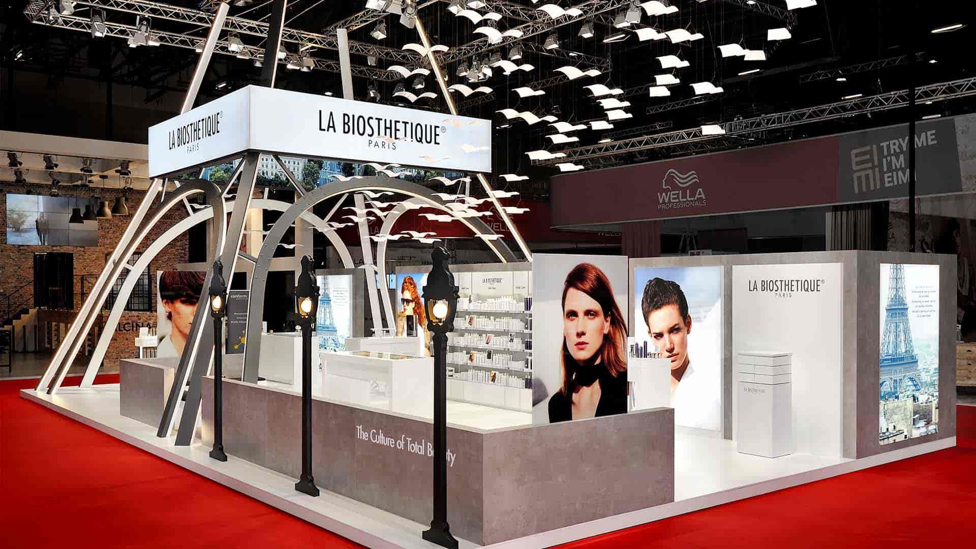 Der Messestand auf der Top Hair in Düsseldorf hat das Flair aus Paris in die Messehallen am Rhein getragen. Xplano realisierte den Entwurf des Architekturbüros LEWANG aus München.